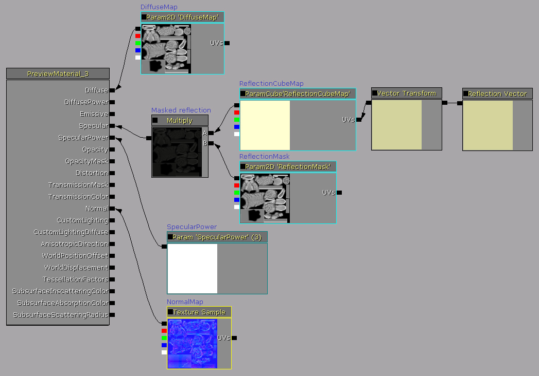 The reason why we see an object is because light is reflected off its surface. In realtime applications this single physical phenomenon must be approximated for performance reasons, so we end up mixing simplified models: the diffuse term simulates evenly scattered light, the specular highlight is a fake reflection of a light source for exampe. Sometimes we need to create really shiny materials and that’s when texture reflections come in to play.
